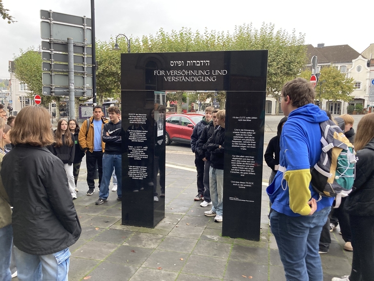 Donnerstags begaben wir uns auf die Spuren Jüdischen Lebens in St. Wendel. Bei einem Stadtrundgang besichtigten wir zwei Denkmale, die „ErinnerungsStele“ (ehemalige Synagoge in WND) und das „Tor der Erinnerung“ an der evangelischen Kirche. Wir entdeckten sogenannte Stolpersteine gegen das Vergessen, die an jüdische Bürger erinnern sollen. Außerdem schauten wir uns im Kino den Film „Schindlers Liste“ an, der von einem Geschäftsmann im 2.Weltkrieg handelt, der Juden beschäftigte und somit vor der Deportation in ein KZ bewahrte und ihr Leben rettete.