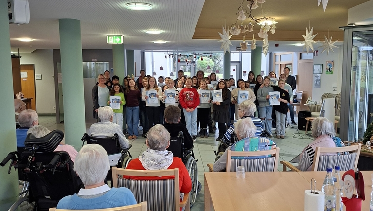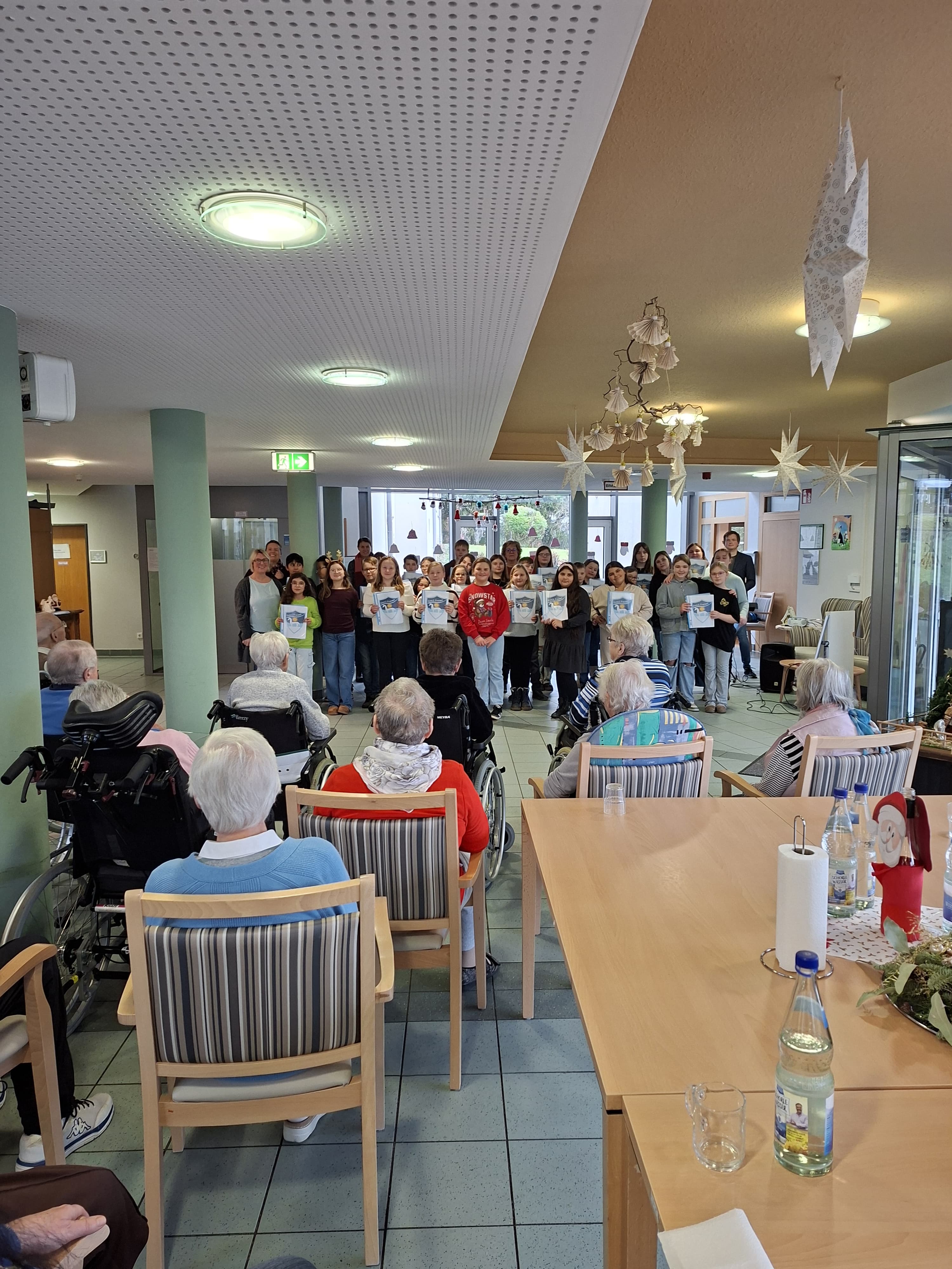 Die Fünftklässler schenkten den Bewohnerinnen und Bewohnern nicht nur ihre Lieder, sondern auch ein Stück Wärme, das in der Vorweihnachtszeit besonders wohltuend ist. Viele sangen leise mit, einige wippten im Takt – und überall war zu spüren, wie Musik Generationen miteinander verbindet.