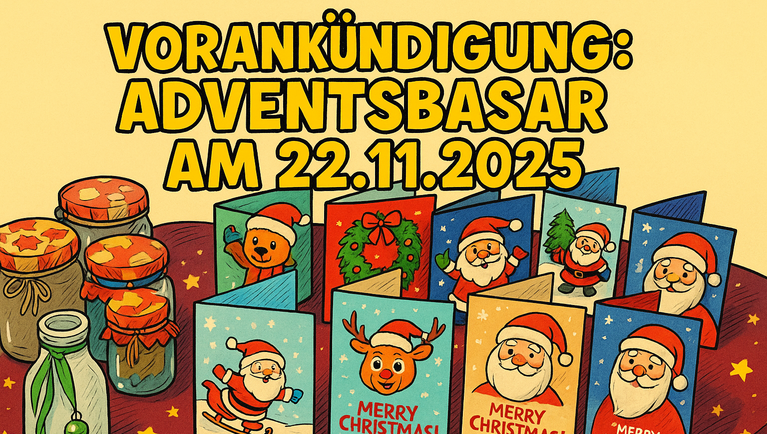 Daher freuen wir uns schon sehr auf den traditionellen Adventsbasar an unserer Schule. Ihr auch? Dann merkt euch gerne schon Samstag, den 22.11.2025 vor.
