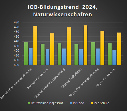 Vor allem in den naturwissenschaftlichen Fächern Biologie, Chemie und Physik erzielen unsere Schülerinnen und Schüler überdurchschnittliche Ergebnisse. In zentralen Kompetenzbereichen liegen wir nicht nur deutlich über dem Landes-, sondern auch über dem Bundesdurchschnitt. Besonders stark zeigen sich die Leistungen dort, wo es um Erkenntnisgewinnung, wissenschaftliches Denken und das Verstehen von Zusammenhängen geht.